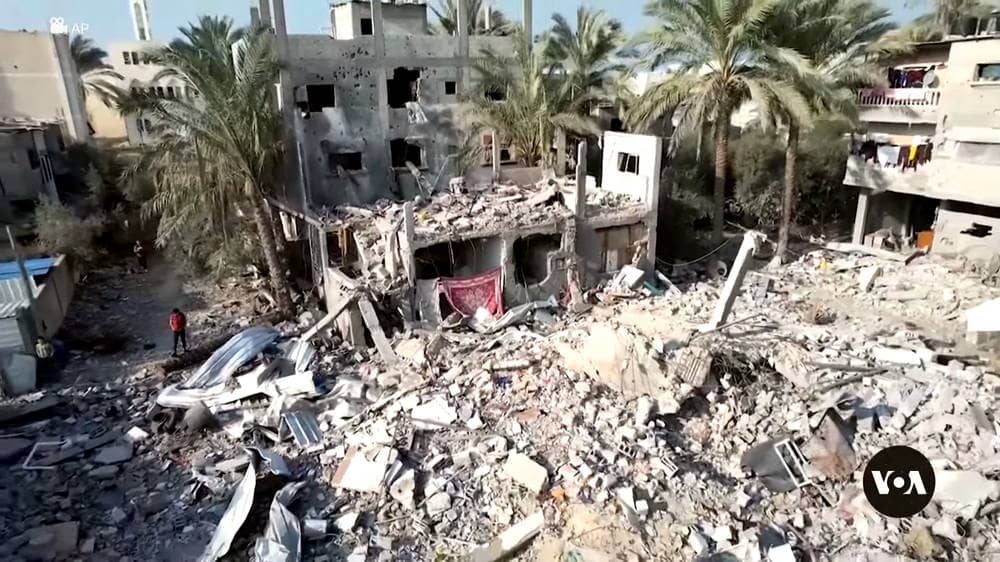 Drohne zeigt Folgen des Luftangriffs in Deir al-Balah - Foto: Wikimedia Commons - Autor: Voice of America - YouTube: https://www.youtube.com/watch?v=J0UH7IkiEYw (gemeinfrei)