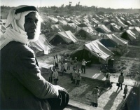 „Dieses von der UNRWA verwaltete Zeltlager nahe Damaskus bot rund 3.200 obdachlosen palästinensischen Flüchtlingen vorübergehend Schutz. Infolge der Feindseligkeiten im Nahen Osten im Juni 1967 wurden 117.500 Menschen aus der von Israel besetzten Region Quneitra in Syrien vertrieben; darunter waren 17.500 bei der UNRWA registrierte palästinensische Flüchtlinge - Foto: Wikimedia Commons - Autor: UNRWA (gemeinfrei)