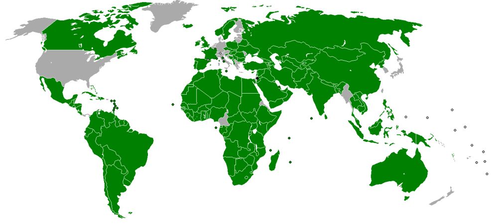 Dunkelgrün: Länder, die den Staat Palästina anerkennen - Foto: Wikimedia Commons - Autor: Alinor (CC BY-SA 3.0)