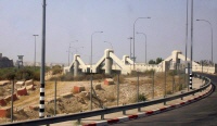 Qasr al-Yahud - Place of Jesus Baptism, on the bank of the Jordan River, North of the Dead Sea, Israel - Beginn der Sperrzone - Tor zur Straße, die zum Jordan führt, im Hintergrund erheben sich die Türme zweier Kirchen, die dort schon auf jordanischem Gebiet stehen - Bildquelle: Wikipedia - Autor: Deror avi - Lizenz s.u.