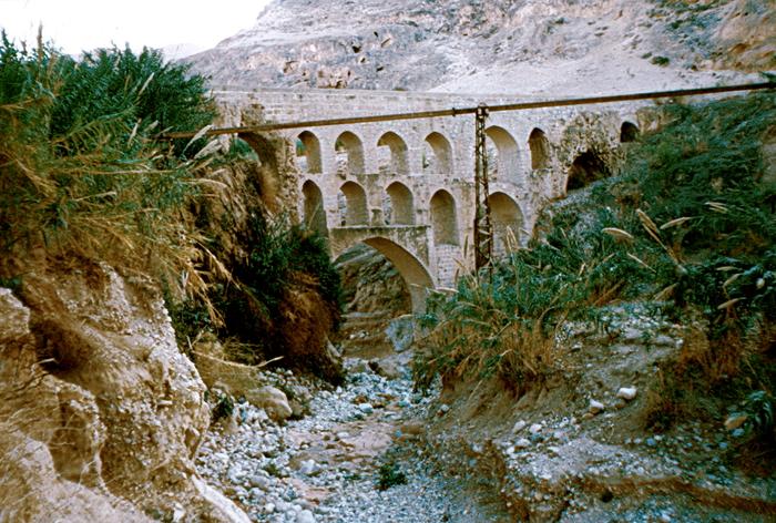 Entlang des Baches wurden mehrere Aquädukte gefunden, das älteste aus der Zeit der Hasmonäer (2. Jahrhundert v. Chr.). König Herodes ließ das Aquäduktsystem ausbauen, um Jericho ganzjährig mit Wasser zu versorgen. Die Aquädukte transportierten Wasser aus den drei Hauptquellen ins Tal nach Jericho. Während der britischen Mandatszeit wurde das System wieder instand gesetzt. Im Wadi Qelt befindet sich das griechisch-orthodoxe Kloster St. Georg. In seiner Umgebung befinden sich zahlreiche byzantinische Eremitenzellen. Am Eingang zum Wadi Qelt bei Jericho befinden sich die Ruinen des königlichen Winterpalasts der Hasmonäer und Herodes des Großen. [1]