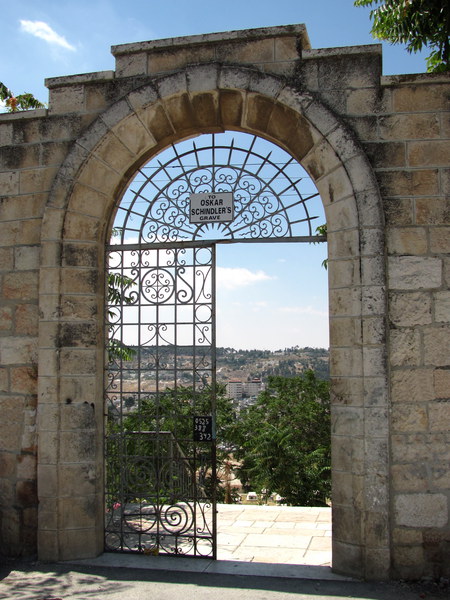 Vielleicht erinnern Sie sich an den Film "Schindlers Liste" - ein Spielfilm von Steven Spielberg aus dem Jahr 1993 nach dem gleichnamigen Roman von Thomas Keneally. Oskar Schindler, geb. am 28. April 1908 in Zwittau, Mähren, Österreich-Ungarn war ein sudetendeutscher Unternehmer, der während des Zweiten Weltkrieges etwa 1200 bei ihm angestellte jüdische Zwangsarbeiter vor der Ermordung in den Vernichtungslagern der Nationalsozialisten bewahrte. Er führt den Ehrentitel "Gerechter unter den Völkern", eine Auszeichnung, die Israel nach der Staatsgründung 1948 einführte für nichtjüdische Einzelpersonen, die unter nationalsozialistischer Herrschaft während des Zweiten Weltkriegs ihr Leben einsetzten, um Juden vor der Ermordung zu retten. Schindler verstarb am 9. Oktober 1974 in Hildesheim, Deutschland. Sein Grab befindet sich auf dem katholischen Friedhof der Franziskaner auf dem Zionsberg.