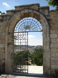 Tor zum Friedhof der Franziskaner auf dem Berg Zion mit der Aufschrift „To Oskar Schindler's Grave“, Jerusalem - Foto: Wikipedia - Autor: Yoninah - Lizenz s.u.