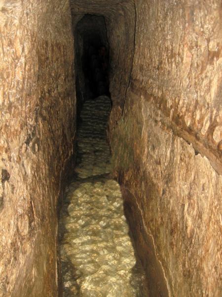Einblick in den sogenannten kanaanitischen Kanal (Tunnel) in der Davidsstadt - eingebunden über Wikimedia Commons