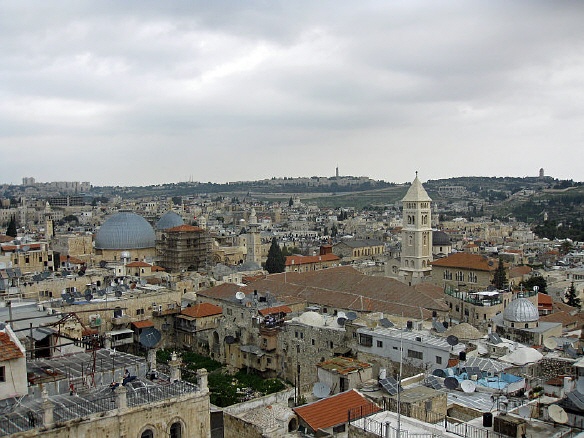 Blick auf die Grabeskirche (links im Bild) und die Erlöserkirche - Bildquelle: Wikipedia - Autor: Deror Avi - Lizenz s.u.