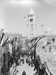 Am Reformationstag (31. Oktober) 1898 wurde die Erlöserkirche durch Kaiser Wilhelm II. (1859 - 1941) und Kaiserin Auguste Victoria im Rahmen seiner Palästinareise eingeweiht und der Schlüssel an Friedrich Wilhelm Barkhausen, Präsident des Evangelischen Oberkirchenrats des Königreichs Preußen, übergeben. Wilhelm II. war der erste westliche Herrscher der Neuzeit, der Jerusalem betrat. Damit er das hoch zu Ross tun konnte, wurde die historische Stadtmauer neben dem Jaffator durchbrochen. Der Predigt zum Einweihungsgottesdienst lag das Bibelwort zu Grunde, das zugleich den Namen der Kirche erklärt: