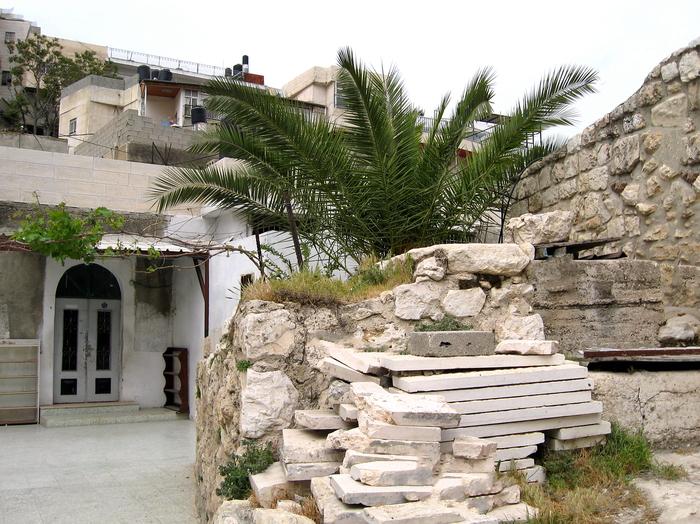 Rechts: Reste des Brunnen Ein Rogel im Innenhof der Bir-Ayoub Moschee - Foto: Wikipedia - Autor: kfar hatemanim - Lizenz: s.u.