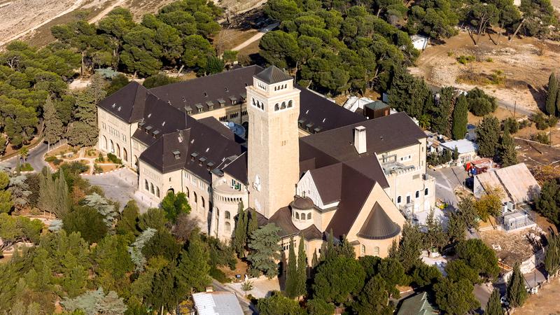 Evangelische Himmelfahrtskirche mit Auguste-Viktoria-Hospital, Jerusalem - Foto: Wikipedia - Autor: Andrew Shiva - Lizenz: s.u.