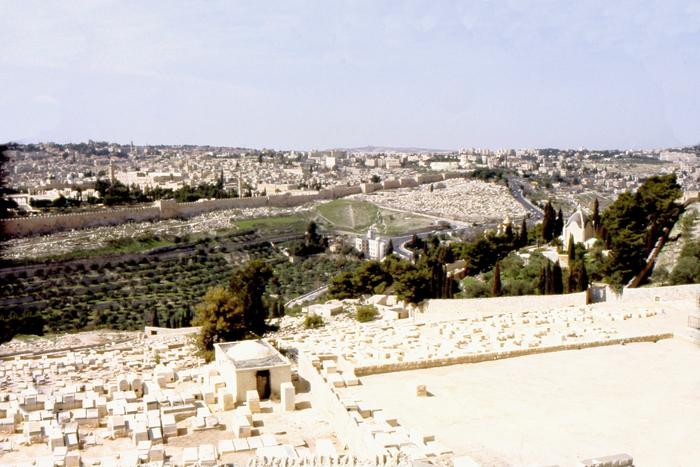 Aus diesem Grunde haben gläubige und reiche Juden seit Generationen den Ölberg als letzten Ruheplatz gewählt, um am Tage der Auferstehung unter den ersten zu sein, die den Messias begrüssen werden. Auch die Christen verehren den Ölberg, wegen seiner Verbindung mit den letzten Tagen Jesus' auf Erden, und hier am und auf dem Ölberg (arab.: Dschebel et Tûr - auch Dschebel-ez-Zaitun) befinden sich eine ganze Anzahl christlicher Erinnerungsstätten. Eine von diesen ist die Kirche der Himmelfahrt der Jungfrau Maria (Assumptionskirche), die über eine noch von den Kreuzfahrern errichtete monumentale Treppenanlage in die Gruft hinab führt, in der die Mutter Jesu einst vor ihrer Himmelfahrt bestattet worden sein soll. [1]