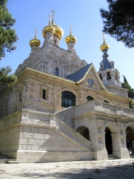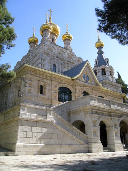 Ganz unterschiedlich vom Baustil der anderen Kirchen ist die Maria-Magdalena-Kirche, eine russisch-orthodoxe Kirche auf dem Ölberg in Jerusalem, mit ihren zwiebelförmigen Türmen, die von Zar Alexander III. zum Andenken an seine Mutter hier errichtet wurde. Hier in dieser Kirche wurde die Prinzessin Elisabeth Alexandra Luise Alice von Hessen-Darmstadt, die ältere Schwester der letzten russischen Zarin Alexandra, bestattet. Prinzessin Elisabeth war nach ihrer Ermordung durch die Tscheka am 17. Juli 1918 über Peking nach Palästina überführt worden. Erbaut wurde sie im Jahr 1886 durch Zar Alexander III. im traditionellen russischen Stil mit sieben vergoldeten Zwiebeltürmen. Vor der Ikonostase befinden sich die letzten Ruhestätten der von der russisch-orthodoxen Kirche als heilige Märtyrin verehrten Elisabeth von Hessen-Darmstadt und ihrer Nichte Alice von Battenberg, der Mutter von Prinz Philipp, Duke of Edinburgh, verheiratet mit Elisabeth II., Königin von Großbritannien.