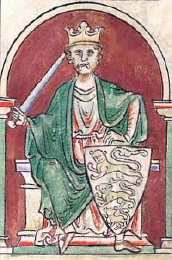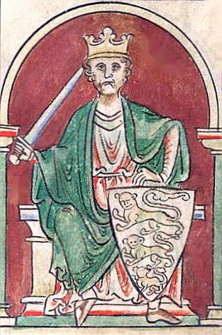 Richard Löwenherz auf seinem Thron, in den Händen ein Schwert und einen Schild mit seinem persönlichen Löwenwappen haltend - Foto: Wikipedia (gemeinfrei)