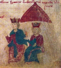 Heinrich VI. und Konstanze von Sizilien; Liber ad honorem Augusti des Petrus de Ebulo, 1196 - Foto: Wikpedia (gemeinfrei)
