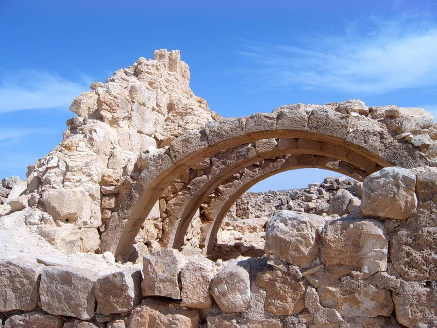 Bogen des Rathauses, Shivta, Negev, Israel - Foto: Wikimedia - Autor: ekeidar - Lizenz: s.u.