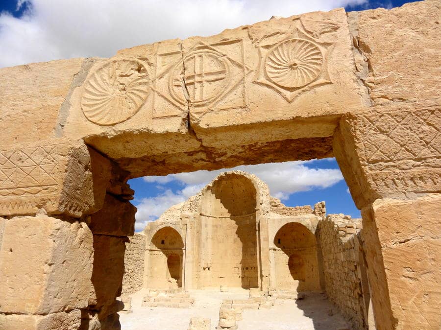 Nordkirche in Schivta - Türsturz mit christlichem Symbol - Foto: Wikimedia Commons - Autor: Mujaddara - Lizenz: s.u.