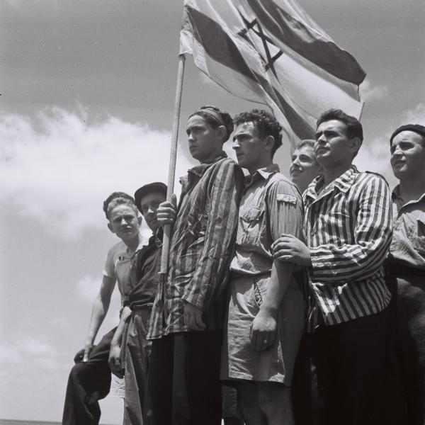 ...ehemalige Buchenwald-Häftlinge auf einem Schiff im Hafen von Haifa, 15. Juli 1945 - Foto: Wikipedia (gemeinfrei)