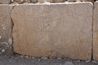 Inschrift in arabisch auf Steinblöcken in der Burg Nimrod - Bildquelle: Wikipedia - Autor: Neil Ward - Lizenz s.u.
