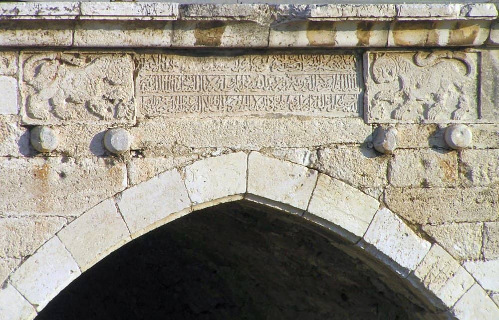 Brücke in Lod mit einer arabischen Inschrift zwischen zwei Löwen, Baibars’ Wappentieren Eman - Eigenes Werk