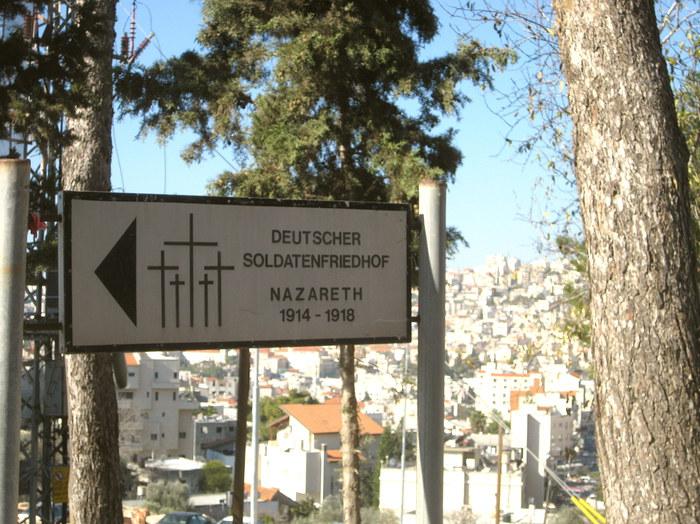 Auf dem deutschen Soldatenfriedhof in Nazareth liegen 261 deutsche Soldaten und Offiziere des Ersten Weltkriegs, die im damaligen osmanischen Palästina und Transjordanien ihren Tod gefunden haben. Die deutschen Soldaten, die zu Spezialeinheiten gehörten, sollten die - für die damalige Zeit - modernsten Aufgabestellungen erfüllen, wie z. B. Aufklärungsflüge. Deutsch-türkische Truppen bewegten sich im Ersten Weltkrieg ab Januar 1915 auf den Suez-Kanal zu, trafen auf britische Truppen und wichen kontinuierlich zurück. Von den 16.000 deutschen Soldaten (darunter im Ersten Weltkrieg auch Soldaten jüdischen Glaubens) wurden 1.000 getötet.
