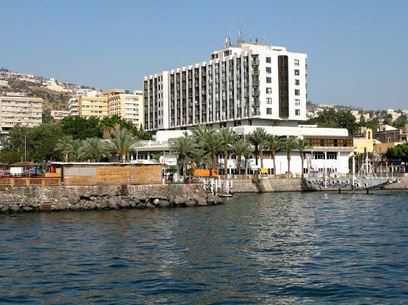 Blick auf ein Hotel in Tiberias - Bildquelle: Wikipedia - Autor: James Emery - Lizenz s.u.