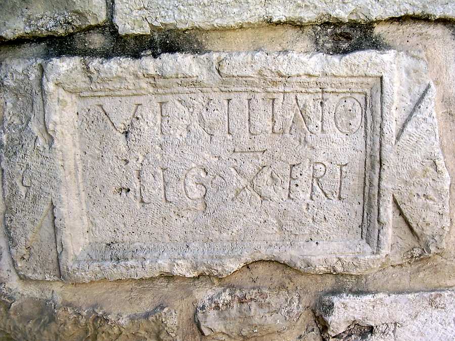 Inschrift vor der Krypta der Auferstehungskirche in Abu Ghosh mit Erwähnung einer Vexillatio (Abteilung) der X. Römischen Legion, Fretensis - Foto: Wikipedia (gemeinfrei)