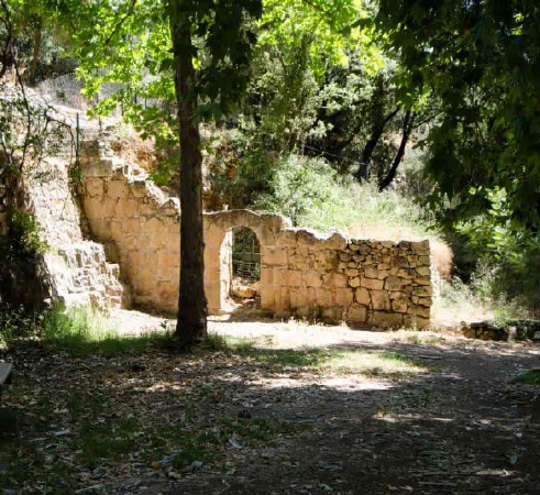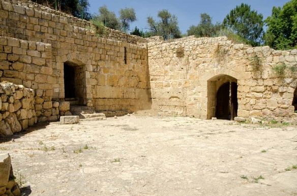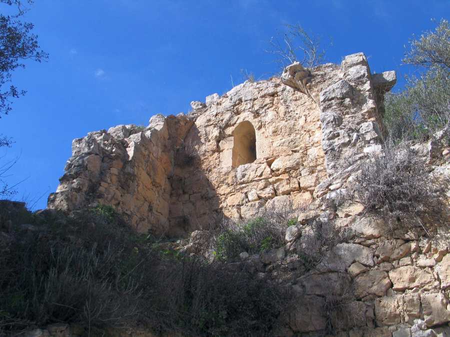 Auf der Nordseite des Bachbetts (Nahal Ksalon) befinden sich die beeindruckenden Ruinen einer 30 x 40 Meter großen Kreuzritterburg, deren südliche Mauer bis zu einer Höhe von 12 Metern erhalten geblieben ist. Das Gebäude hatte mehrere Tore und zwei gewölbte Hallen. Aus archäologischen Untersuchungen geht hervor, dass die Festung zwischen 1140 und 1160 während der Herrschaft von Fulko von Jerusalem erbaut wurde- im gleichen Zeitraum wie die Festungen von Tzova und Emmaus. Südlich des Gebäudes befinden sich ein Naturschutzgebiet und ein muslimischer Friedhof. Im Jahr 1925 erwarb ein amerikanischer Jude namens Isaac Segal Feller ein Grundstück von 600 Dunams Größe auf einem Hügel über den Quellen. [1]