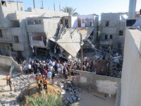 Originaltitel: "The home of the Kware' family, after it was bombed by the military, while family members and neighbors were present inside the house and in its vicinity." - Foto: Wikimedia Commons - Autor: Muhammad Sabah and B'Tselem - Lizenz: s.u.