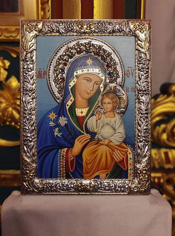 Ikone der Jungfrau Maria - St.-Porphyrius-Kirche - Stadtteil Al-Zaytoun, östlich der Altstadt von Gaza - Architekturstil: byzantinisch - Foto: Wikimedia Commons - Autor: Rawanmurad2025 – Lizemnz: s.u.