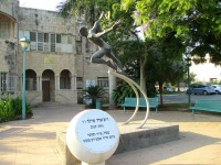 Ramla City Hall - im Vordergrund eine Sculpture von Richard Shilo - Foto: Wikipedia - Autor: Dr. Avishai Teicher Pikiwiki Israel - Lizenz: s.u.