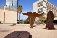 Sculpture von Henry Moore - im Hintergrund das Tel Aviv Museum of Art - Bildquelle: Wikimdia Commons - Autor: David Shay - Lizenz s.u.