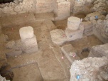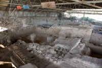 Ruinen einer Tempelanlage (oberer Tempel - Stratum X) aus der Zeit der Philister (12. Jhdt B.C.) - Foto: Wikipedia - Autor: Oren Rozen - Lizenz: s.u.