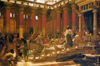Besuch der Königin von Saba im Palast von König Salomon, Öl auf Leinwand, Gemälde von Edward Poynter, 1890 - Bildquelle: Wikipedia (Public domain)